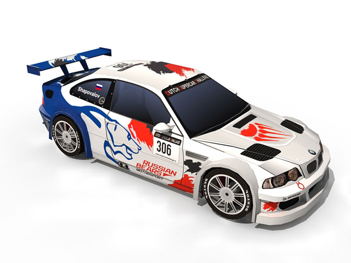 This template was submitted by Sergey Timinsky. He share with us a re-painted version of car model BMW M3 GTR. He choose a Russian Bears Motorsport (RBM) paint scheme when it competing for the first time in The Dutch Supercar Challenge 2007. RBM is a racing team based in Russia. Originally RBM used BMW 320i in the first race in Circuit Park Zandvoort, Netherlands. Sergey also made 1:24 scale of this template which you can find it after 1:16 scale template pages. You can use assembly instructions from the BMW M3 GTR.