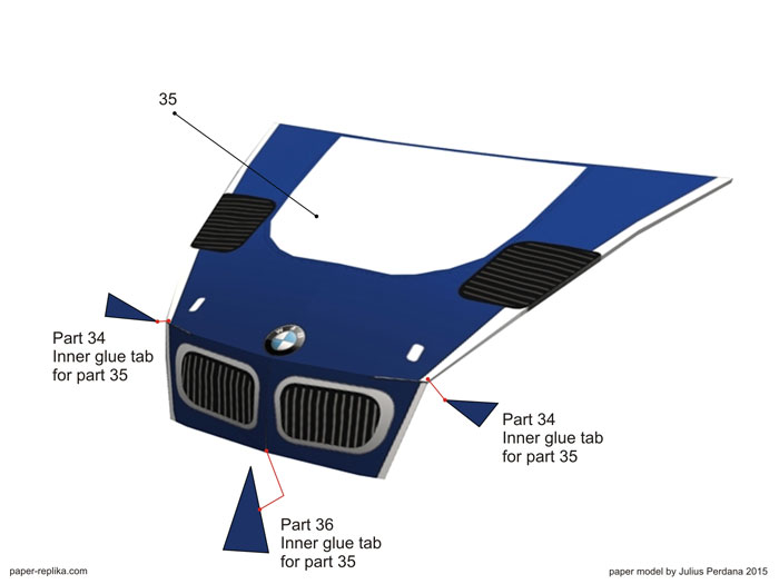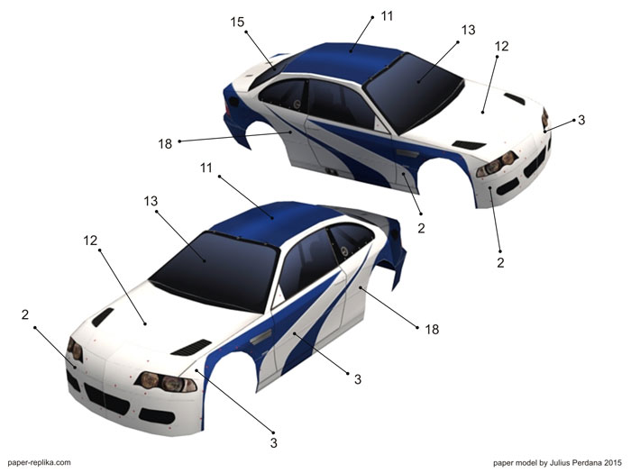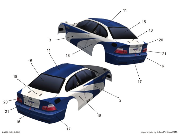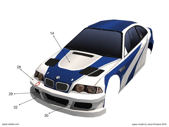 I am in the mood for cars, this car is from a car game The Need for Speed "Most Wanted", it's so famous and an all time favorite model race car. Recently I reinstalled GTA San Andreas to having fun again with it until now. I wish that game has this car. I have seen modders made it possible to drive a BMW M3 GTR on GTA San Andreas, but I'm too lazy to mod a game and too lazy to find out how. So I made the model car instead. This model is 1:16 scale, the model length will be 28 cm. I have simplify some parts so the parts can be fitted in no more than 6 pages.