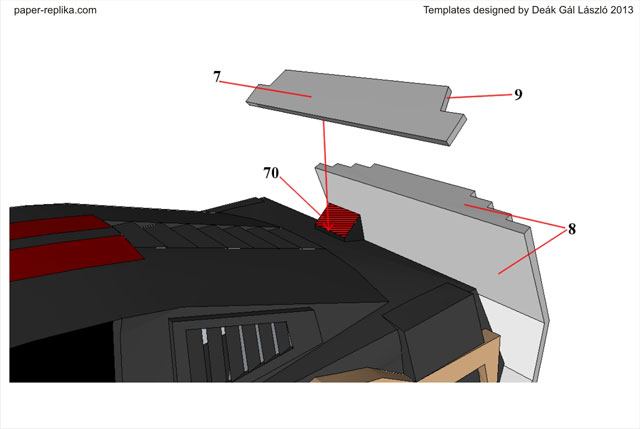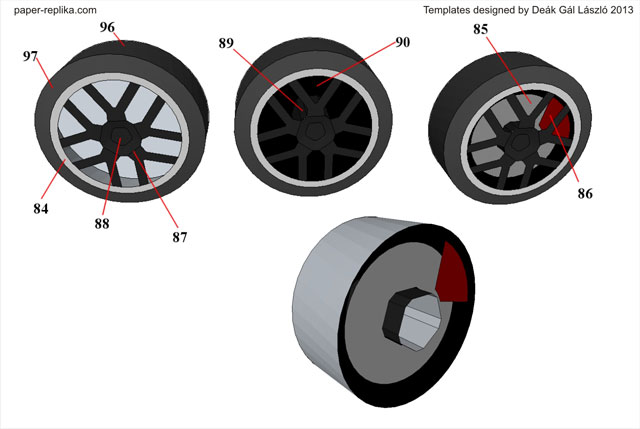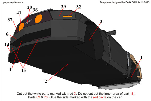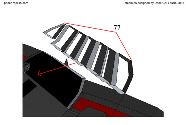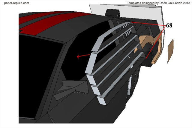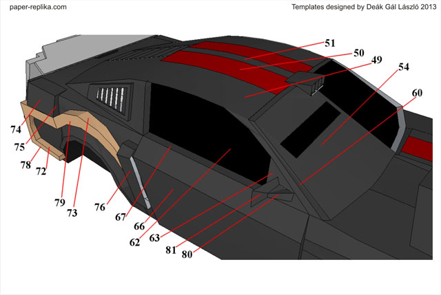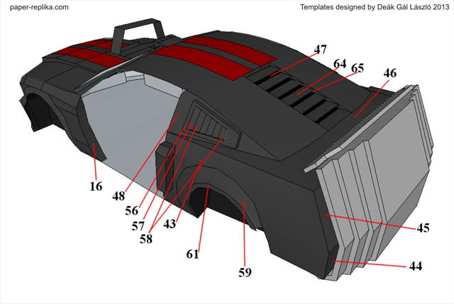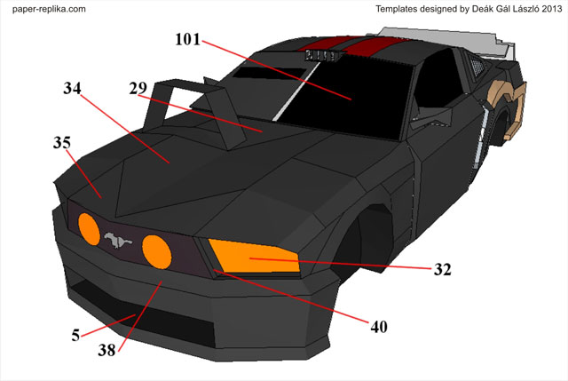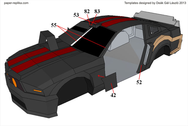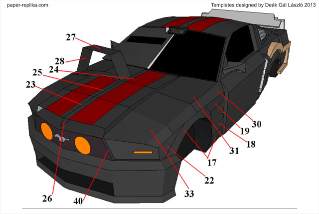 This amazing model car paper model template was submitted by Deák Gál Laci from Hungary. The car is from the movie Death Race (2006) called the Monster, owned by a driver named Frankenstein. It is a heavily modified Ford Mustang GT equipped with two gatling gun mounted on top of the hood. The texture of this model is amazing, I like it a lot. It gives a sense of scale and realism. By looking at its 8 pages of patterns, this paper model is not for beginner. There are many small and very small parts that have to handle with special care, skill and precision. Deák also made the assembly instructions available in PDF