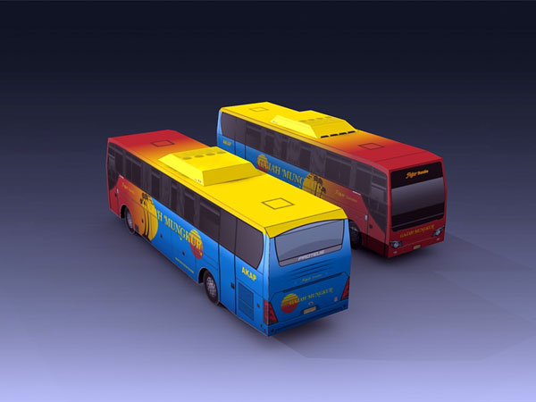 In Indonesia these buses called AKAP. AKAP is Antar Kota Antar Propinsi which means Intercity Interprovince. There are many companies that served in various intercity routes such as to Bali and Sumatra from Java island. Just like other countries there are classes in these mass transportation, such as economy class usually without air conditioning and executive class with its full VIP services. This bus paper model is from Gajah Mungkur Intercity Coachlines. Not like transjakarta paper model It has simplified.