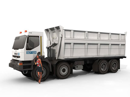 This truck (Renault Kerax 400 8x4) mainly purpose is to transport coal in Kalimantan Timur (East Borneo). The load capacity is 33 cubic meters, with full trailer it is 89 cubic meters, or approximately 80 tons! This truck model in real life belong to PT. DMP. Operated on Bengalon Coal Mining, east borneo. They operate at least 50 trucks, with sideway hydrolic dumping system.This truck is a request from a friend, Ronald from PT. Alun, Authorized Renault Trucks Distributor in Indonesia. Cutout girl figure is from truck-center.ru