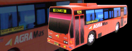 Start on august 2008 Agramas Bus served Tangerang (BSD) - Bekasi timur city via Jakarta Outer Ring Road TOL, 15 bus are built-up and 3 others made by HINO Japan . Agramas is abbreviation of PT Anugerah Emas, the company which operated this red bus. Design by Rino Liha, he is also a Peri Member.