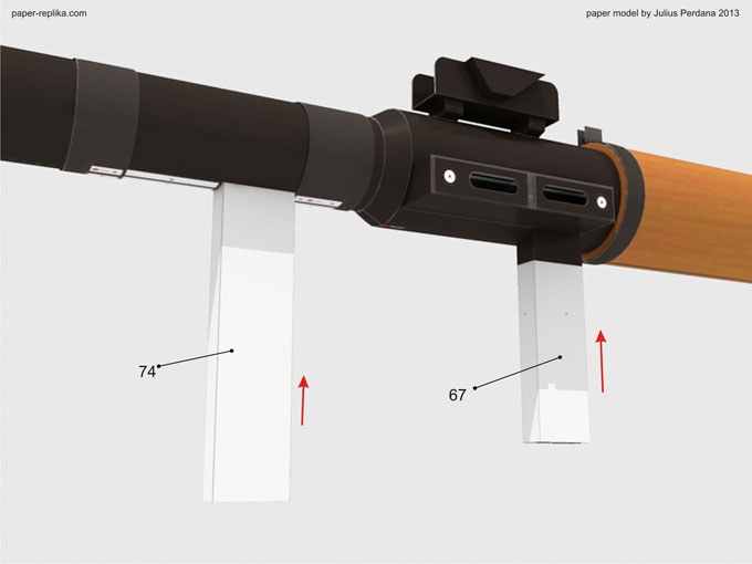 Assembly the constructions stick part (82,85,86 and 80) with part 78 inside them. You can add more roll of paper or thicker paper inside it to add strength.