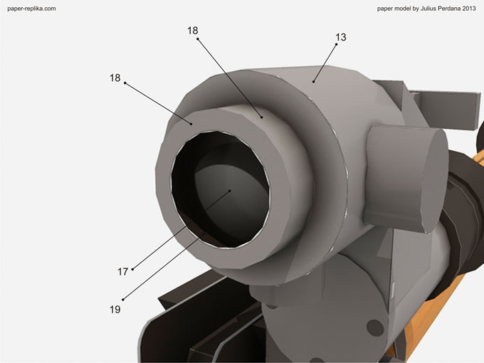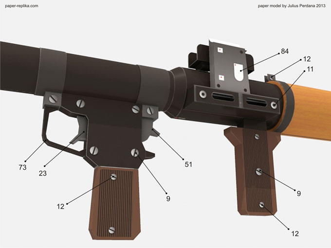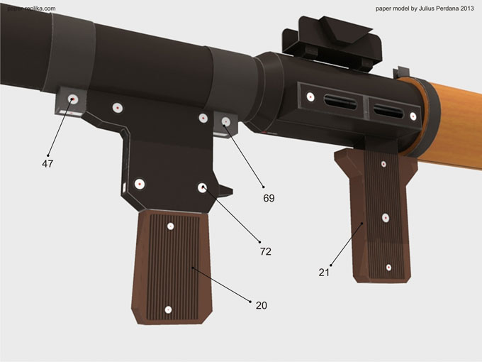 WARNING : It is made of paper and will not actually shoot, just for display purposes. Please be advised, it may built with paper but it surely look like a REAL weapon, please do not use it other than display purposes, such as carry it around on public places. You could have problems with authorities. You can disassemble it when transporting. On some countries possessing this kind of model is illegal, please be sure before making the model.