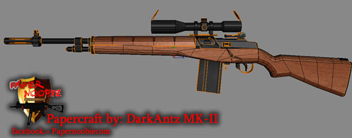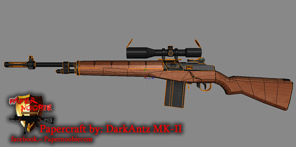 We've got a new rifle model from DarkAntz MKII. Of course, it fixed with 1:1 scale. Files are 8.23 MB, therefore they have been divided into 6 parts, in order to facilitate the download. according to my knowledge M14 rifle is a very accurate rifle. Although I only ever use them in the game call of duty 4 but if you look at the video review it seems that's true. DarkAntz MKII open for you if you want to request another weapon designs, you can visit his facebook page at papernoobiecom. These files can also be downloaded at papermodelers.com.
